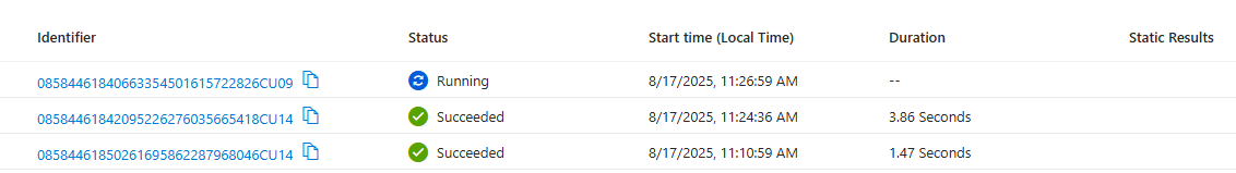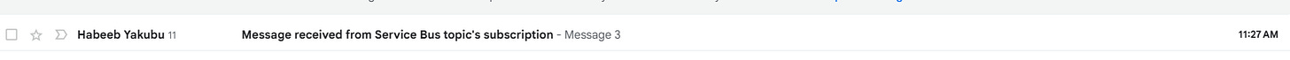 Navigate to the Overview page of your logic app. Then select the Run history tab in the bottom pane. You see the logic app runs messages that were sent to the topic. It could take a few minutes before you see the logic app runs. Select Refresh on the toolbar to refresh the page.
