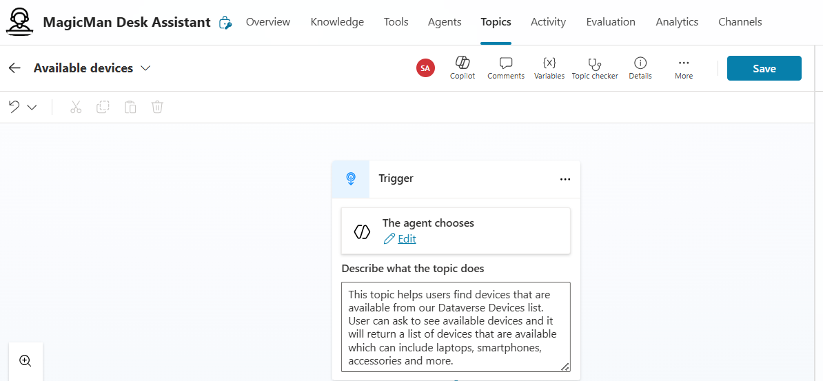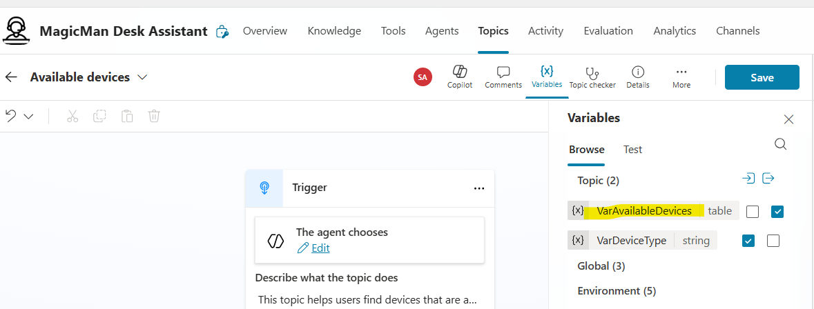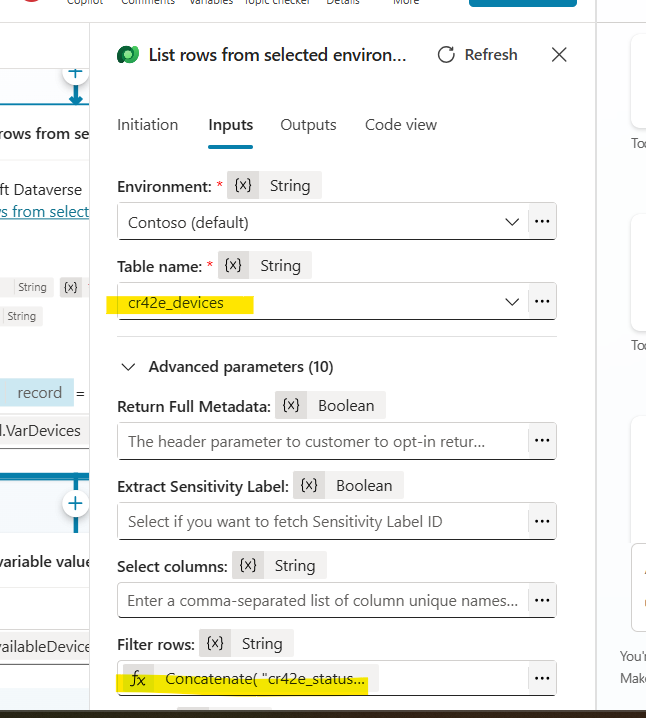 In this post, I will walk through how the Available Devices topic that retrieves and filters enterprise data from Dataverse in real time was designed.