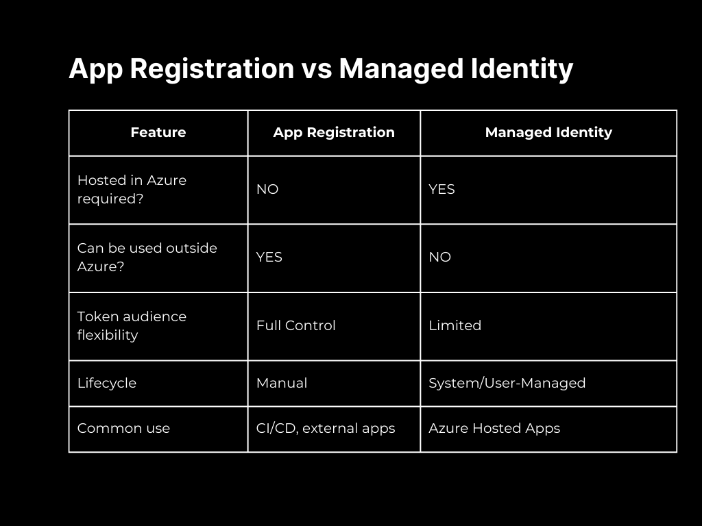 When to Use Managed Identity vs App Registration in Azure – A Visual Guide